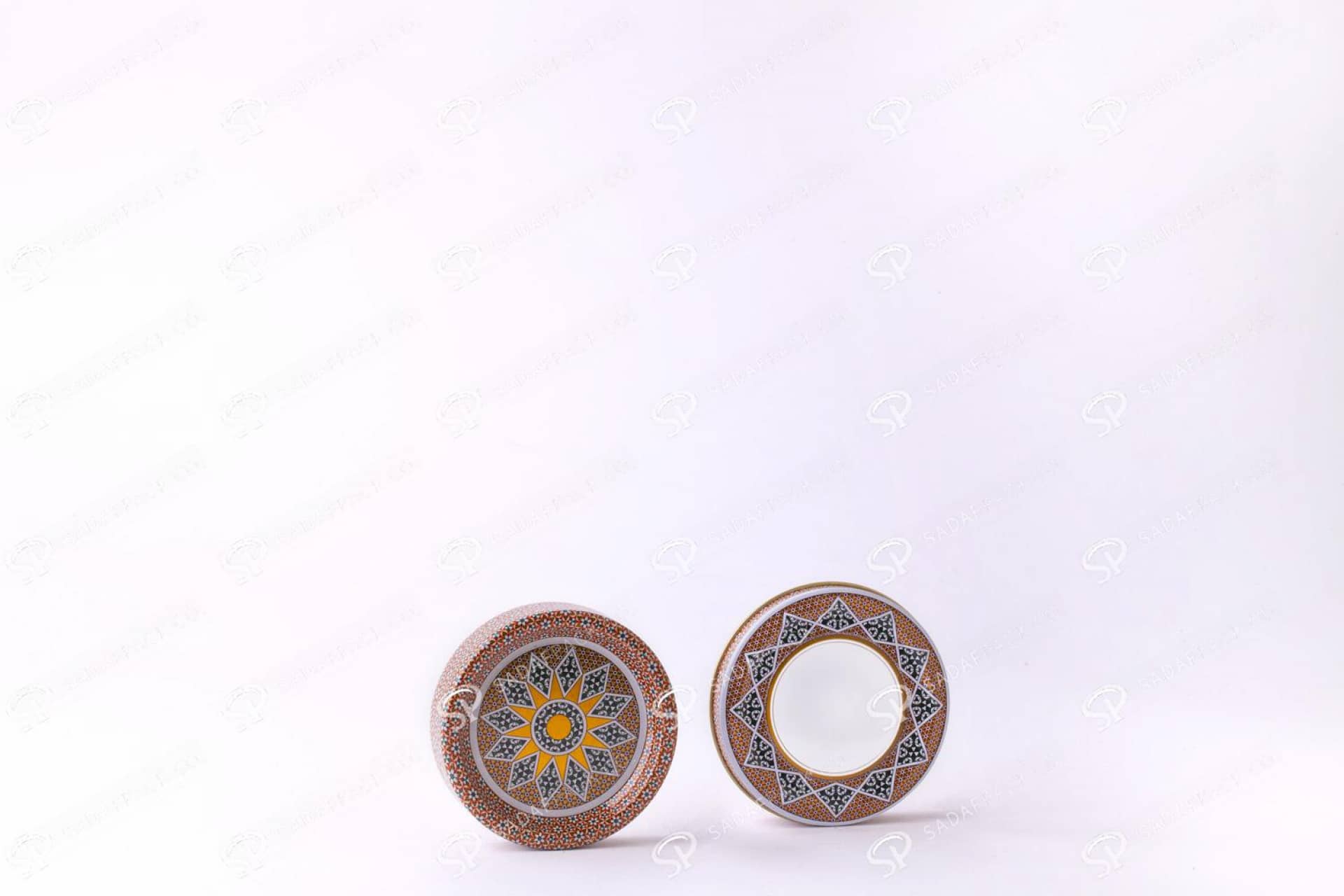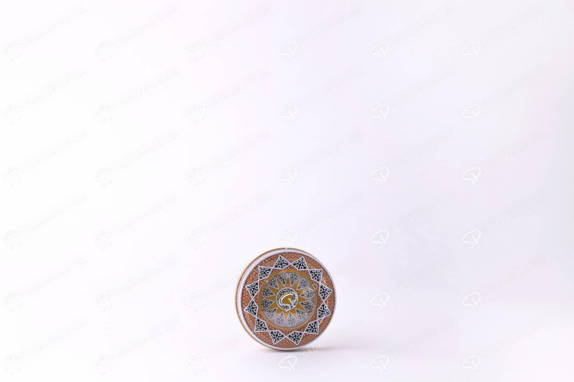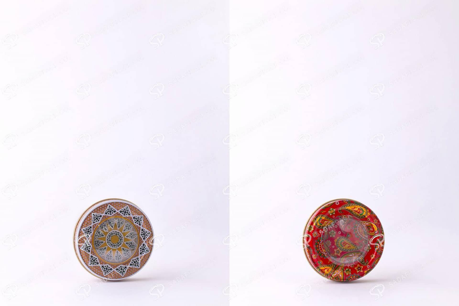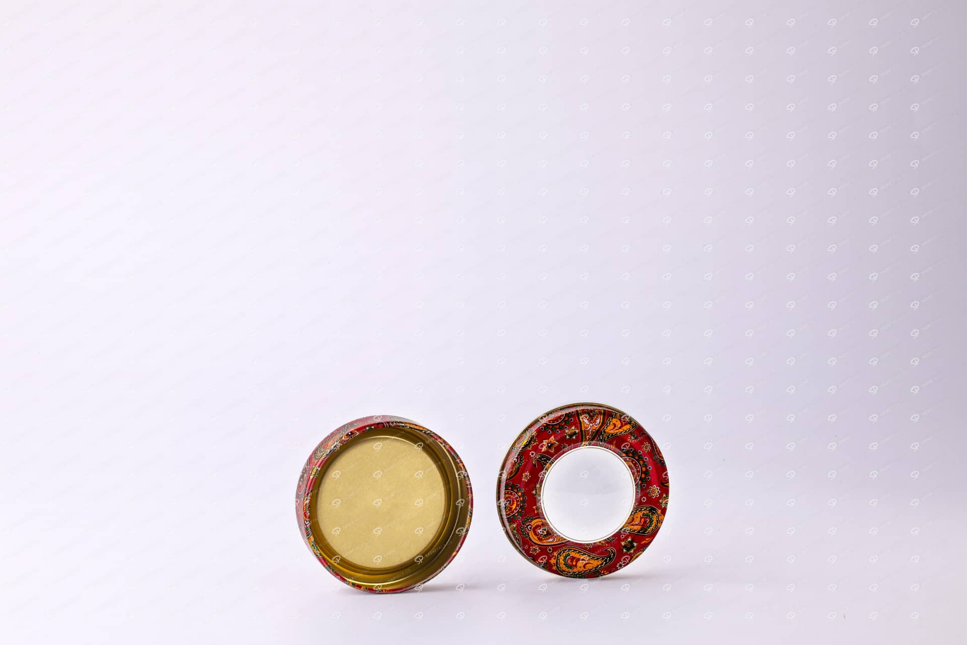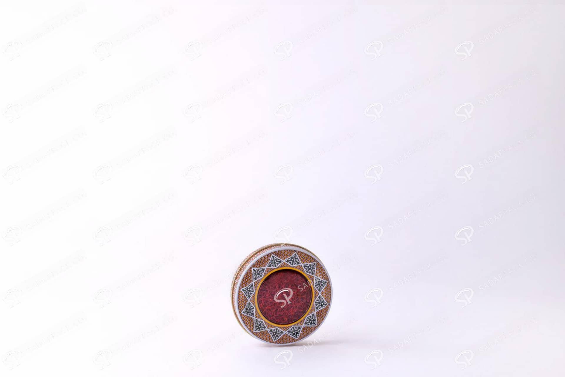 ضمناً در ظرف فلزی زعفران طرح دایره سایز کوچک 3 گرمی میتوان از دو طرف استفاده کرد که در طرف اول3 گرم سرگل و 1.5 گرم پوشال قرار میگیرد و در طرف دوم 6 گرم سرگل و 3 گرم پوشال قرار میگیرد.