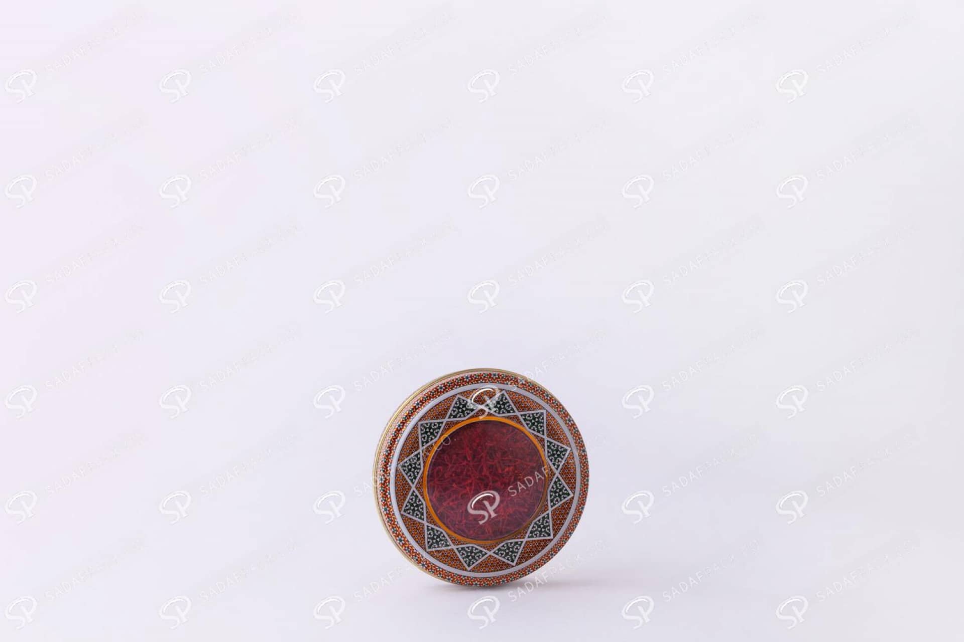 .ضمناً در ظرف فلزی زعفران طرح دایره سایز کوچک 5 گرمی میتوان از دو طرف استفاده کرد که در طرف اول 5 گرم سرگل و 2.5 گرم پوشال و در طرف دوم 10 گرم سر گل و 5 گرم پوشال قرار میگیرد