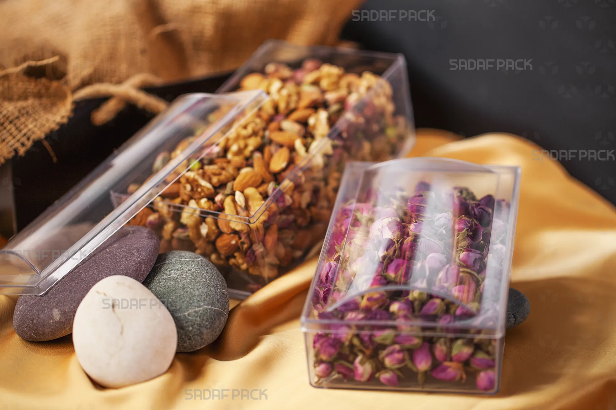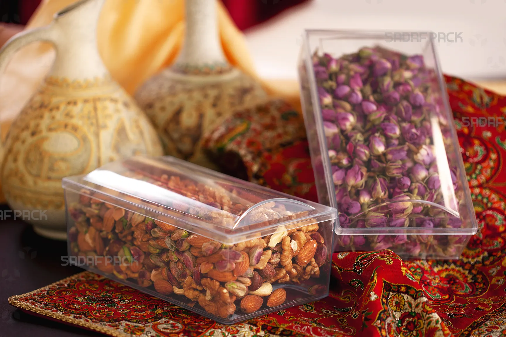 این محصول عمدتا به عنوان ظروف بسته بندی خرما، آجیل، میوه خشک و شیرینی استفاده میشود.